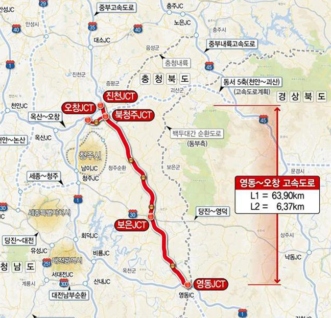 ¿µµ¿~º¸Àº~¿Àâ °í¼Óµµ·Î´Â °æºÎ°í¼Óµµ·Î ¿µµ¿ ºÐ±âÁ¡¿¡¼­ Áߺΰí¼Óµµ·Î ÁøÃµ ºÐ±âÁ¡±îÁö 63.9§° ±¸°£°ú ûÁÖ±¹Á¦°øÇ× ³ªµé¸ñÀ» Æ÷ÇÔÇØ ¿À⠺бâÁ¡¿¡¼­ ºÏûÁÖ ºÐ±âÁ¡±îÁö 6.37§° ±¸°£À» ½Å¼³ÇÏ´Â »ç¾÷ÀÌ´Ù.