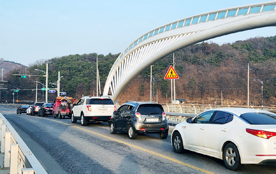 º¸Àº´ë±³´Â º¸ÀºÀ¾ »ï»ê¸®, Á×Àü¸®¿Í ÀÌÆò¸®¸¦ ¿¬°áÇÏ´Â ´Ù¸®·Î ÃâÅð±Ù ½Ã°£ ÀÏÆò±Õ 400¿©´ëÀÇ Â÷·®ÀÌ ÀÌ¿ëÇϰí ÀÖ´Ù.