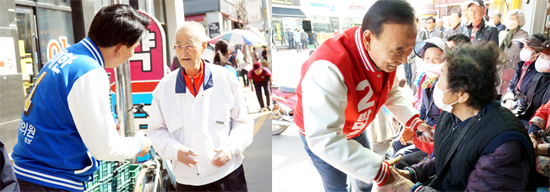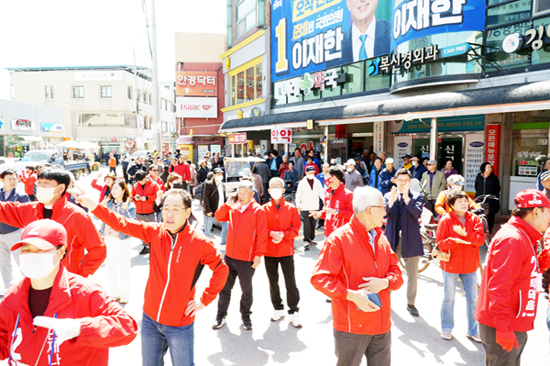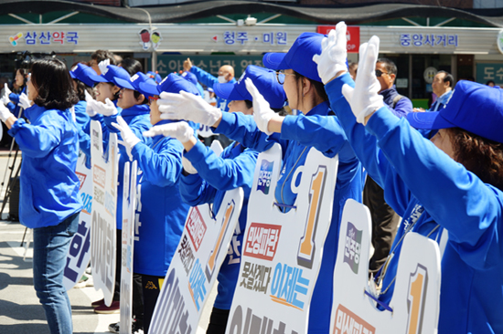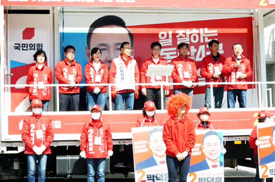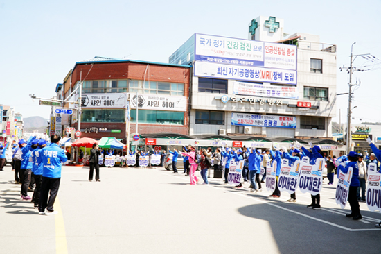 4¡¤10 ÃѼ± µ¿³²4±º ¼±°Å±¸ÀÇ ±¹¹ÎÀÇÈû ¹Ú´öÈì Èĺ¸¿Í ´õºÒ¾î¹ÎÁÖ´ç ÀÌÀçÇÑ È帴 5ÀÏÀåÀÌ ¿¸° 1ÀÏ º¸ÀºÀ¾ Áß¾Ó»ç°Å¸®¿¡¼ °Å¸®À¯¼¼ÀüÀ» ÆîÄ¡¸ç ÁöÁö¸¦ È£¼ÒÇß´Ù.