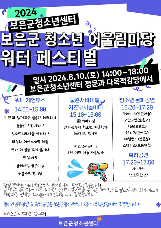 'º¸Àº±º û¼Ò³â ¾î¿ï¸²¸¶´ç ¿öÅÍ Æä½ºÆ¼¹ú' °³ÃÖ ¹°Ç³¼± ÅͶ߸®±â, ¹°ÃÑ ¼¹ÙÀ̹ú, ŰÁî ³¬½Ã µî ´Ù¾çÇÑ Ã¼Çè