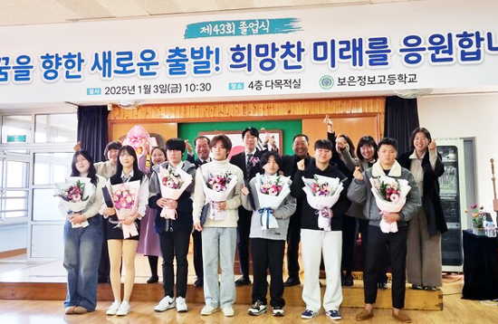 º¸ÀºÁ¤º¸°íµîÇб³(±³Àå ±èÁ¤ÈÆ)°¡ Áö³­ 3ÀÏ Á¦43ȸ Á¹¾÷½ÄÀ» ³¡À¸·Î 43³âÀÇ ¿ª»ç¸¦ ¸¶°¨ÇÏ°í Æó±³µÈ´Ù.