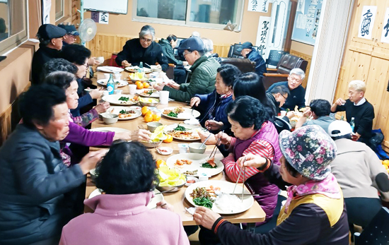 ¸ÅÁÖ ¿ù, ¼ö, ±Ý¿äÀÏ Àú³á, ¸¶À»È¸°ü¿¡ ¸ð¿© ÇÔ²² µû¶æÇÑ ½Ä»ç¸¦ ³ª´©´Â ÀÌ Çà»ç´Â ÃÖ°í·É ³ëÀκÎÅÍ ÀþÀº û³â±îÁö 20¿© ¸íÀÇ ÁֹεéÀÌ Âü¿©Çϸç Å« È£ÀÀÀ» ¾ò°í ÀÖ´Ù.