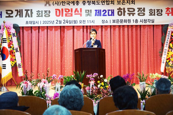 À̾î ÇÏÀ¯Á¤ ½ÅÀÓ È¸ÀåÀº "115¸íÀÇ ¿¹¼úÀÎÀÌ È°µ¿ÇÏ´Â º¸Àº¿¹ÃÑ È¸ÀåÀ¸·Î¼­ ¸·ÁßÇÑ Ã¥ÀÓ°¨À» ´À³¤´Ù"¸ç "¿¹¼úÀÎÀÇ ÀÚÁ¸½É°ú ǰÀ§¸¦ ÁöŰ´Â ¿ïŸ¸®°¡ µÇ°Ú´Ù"´Â ÃëÀÓ Æ÷ºÎ¸¦ ¹àÇû´Ù.