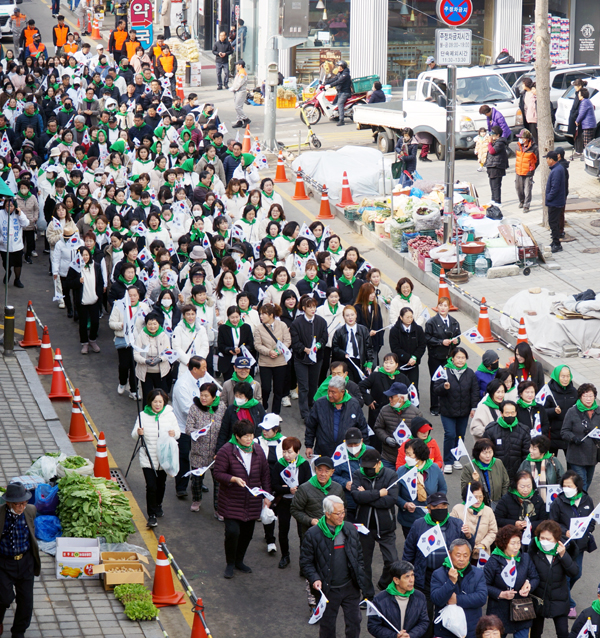 Çà»ç´Â º¸ÀºÇѾ纴¿ø Áß¾Ó»ç°Å¸®¿¡¼ ½ÃÀ۵ƴÙ. Âü¼®ÀÚµéÀº űر⸦ ¼Õ¿¡ µé°í ¹îµé°ø¿ø±îÁö ½Ã°¡ÇàÁøÀ» ÆîÄ¡¸ç 3¡¤1¿îµ¿ÀÇ Àǹ̸¦ µÇ»õ°å´Ù.