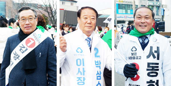 º¸Àº»õ¸¶À»±Ý°í¿¡¼´Â ±âÈ£ 1¹ø ±è±¤ÀÏ(68), ±âÈ£ 2¹ø ¹Ú»ï¼ö(66), ±âÈ£ 3¹ø ¼µ¿Çö(61) È帰¡ Ãâ¸¶ÇØ °¢°¢ ȸ¿øµéÀÇ ¼±ÅÃÀ» ±â´Ù¸®°í ÀÖ´Ù.