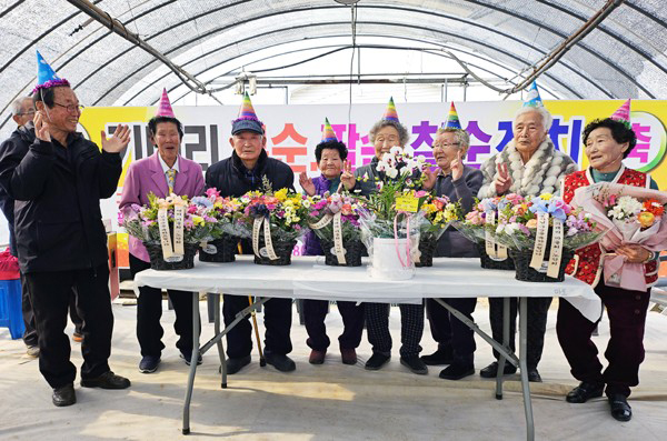 ÇÑÆí 80¿© °¡±¸ ÁֹεéÀÌ ¿À¼Õµµ¼Õ ¸ð¿©»ç´Â ±â´ë¸®´Â ±â´ë¸®´Â ¸Å³â ¸¶À» ¾î¸£½ÅµéÀÇ Àå¼ö¸¦ ±â¿øÇÏ´Â ÀÜÄ¡¸¦ ¿¾î ÁÖ¹Îµé °£ÀÇ À¯´ë¸¦ ´ÙÁö°í ÀÖ´Ù.