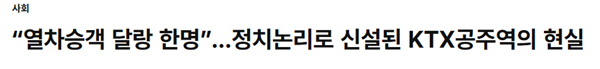 Áö³ ¿¬¸» Á¶¼±ÀϺ¸(12¿ù 16ÀÏÀÚ 2¸é)¿¡ º¸µµµÈ KTX °øÁÖ¿ªÀÇ »ç·Ê´Â ¿ì¸®¿¡°Ô ½Ã»çÇÏ´Â ¹Ù°¡ Å©´Ù.