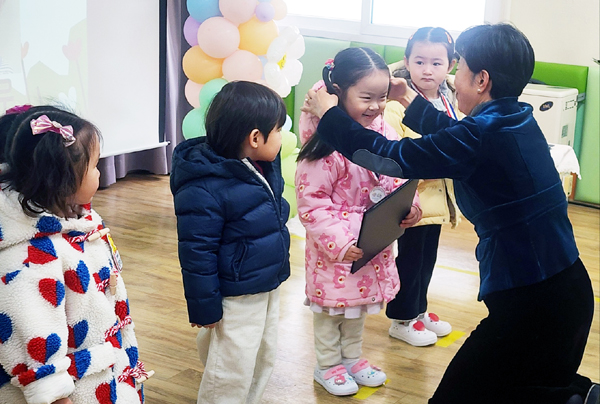 À̳¯ ±³Á÷¿øµéÀº µû¶æÇÑ ÀÔÇÐ ¼±¹°°ú ÇÔ²² ȯ¿µ Àλç·Î ¾ÆÀ̵éÀ» ¸Â¾Ò°í, ¾ÆÀ̵éÀº ¼³·¹´Â Ç¥Á¤À¸·Î ¼±»ý´Ô°ú Ä£±¸µé¿¡°Ô ù Àλ縦 °Ç³Þ´Ù.