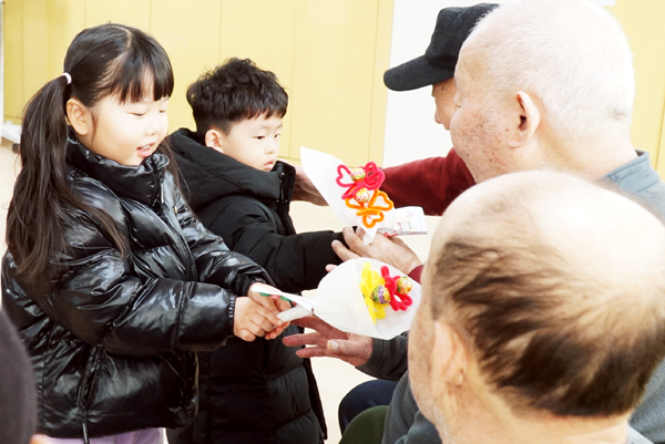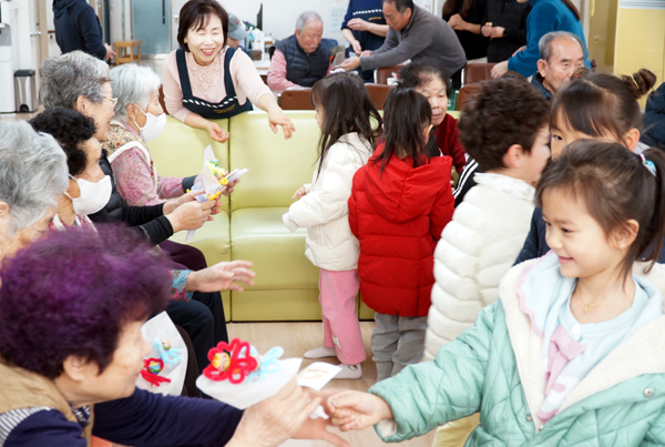 ¼¾ÅÍ¿¡ µé¾î¼± ¾ÆÀ̵éÀº Á÷Á¢ ¸¸µç »çÅÁ ²É´Ù¹ßÀ» µé°í ¾î¸£½Åµé¿¡°Ô ´Þ·Á°¡ "ÇҾƹöÁö, ÇÒ¸Ó´Ï »ç¶ûÇØ¿ä!", "°Ç°­ÇÏ°Ô ¿À·¡ »ç¼¼¿ä"¶ó°í ¿ÜÄ¡¸ç Àç·ÕÀ» ÇÇ¿ü´Ù.