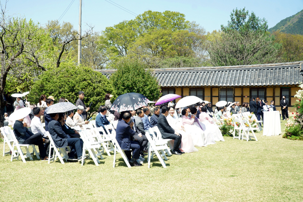 À̳¯ °áÈ¥½ÄÀº Á¤ÇüÈµÈ ½Ç³» ¿¹½ÄÀåÀ» ¹þ¾î³ª ÇÑ¿Á °íÅà ¸¶´ç¿¡¼ ÁøÇàµÆ´Ù´Â Á¡¿¡¼ ´«±æÀ» ²ø¾ú´Ù.